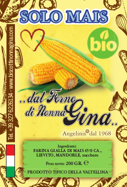 Ingredienti: farina gialla di mais* 45%ca., mandorle*, zucchero di canna*, albume*, lievito